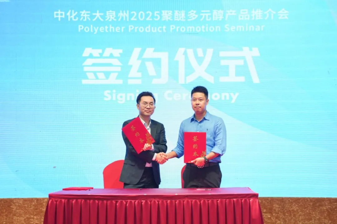 Since the trial production of Dongda’s Quanzhou base, it has gradually won the trust of many customers in East China and South China with its stable product quality, and successfully passed product tests by a number of enterprises. At the event site, Fujian Tianjiao Chemical Materials Co., Ltd. and Dongguan Hengying Sponge Products Co., Ltd., as customer representatives, formally signed cooperation agreements with Dongda Quanzhou.
